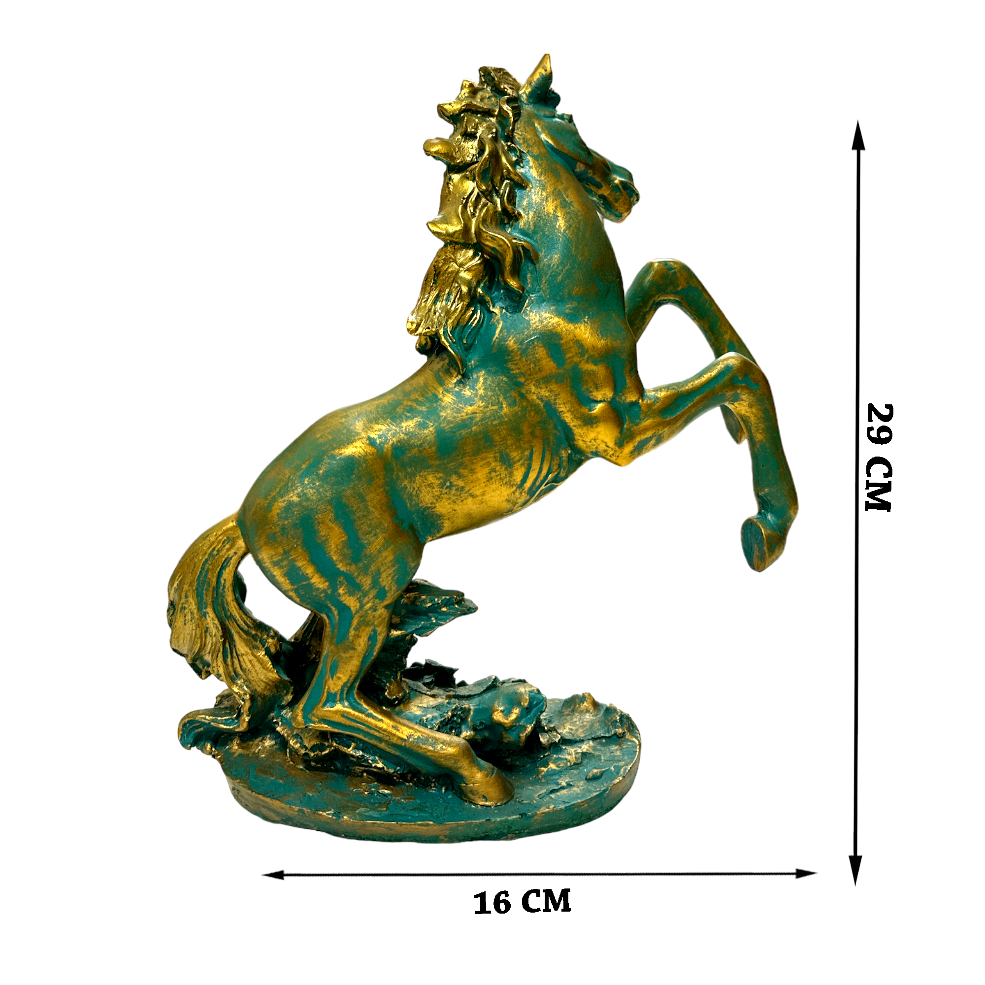 • Majestic Appeal: Decor House Horse Golden Green Collor 11 Inch Showpiece for home and office spaces.