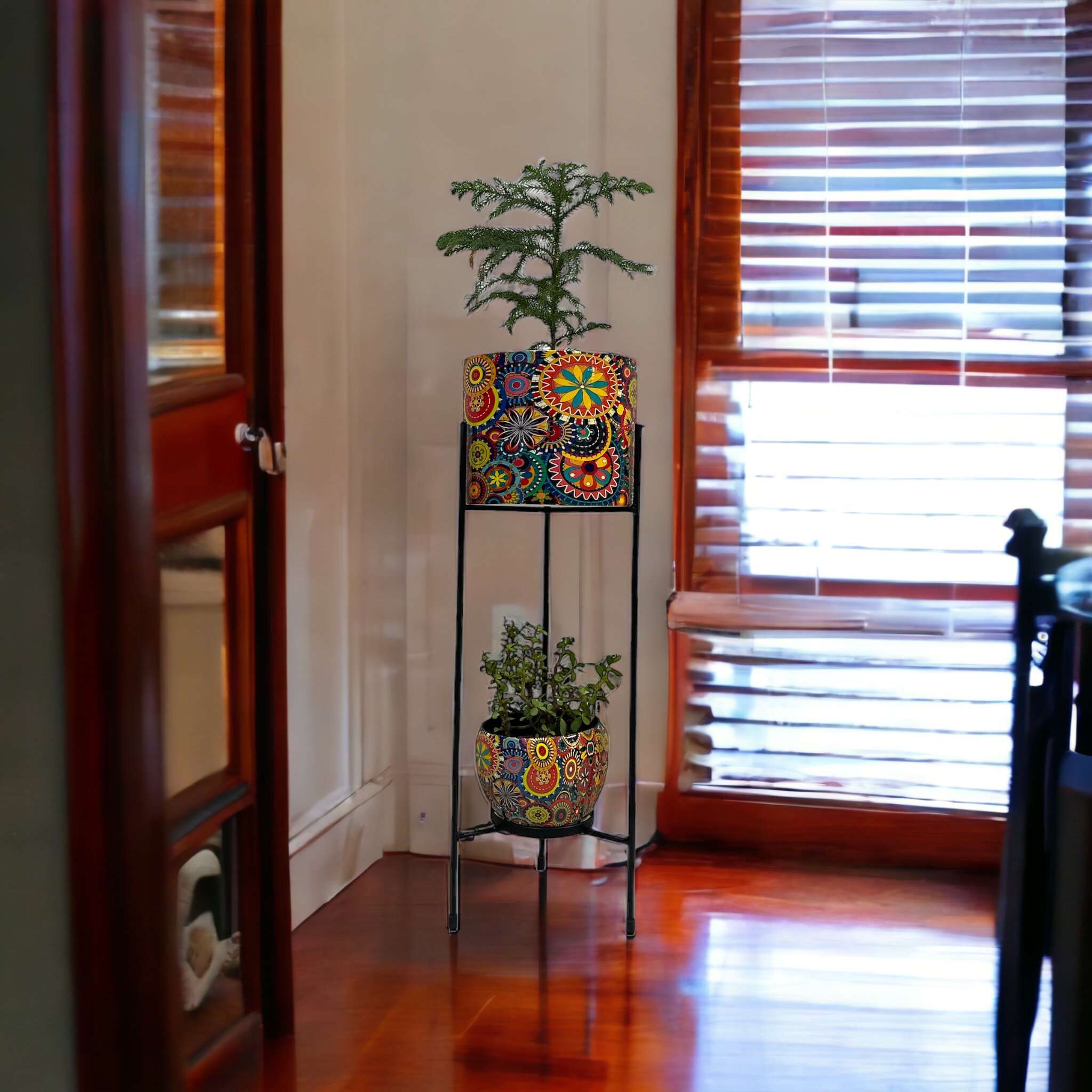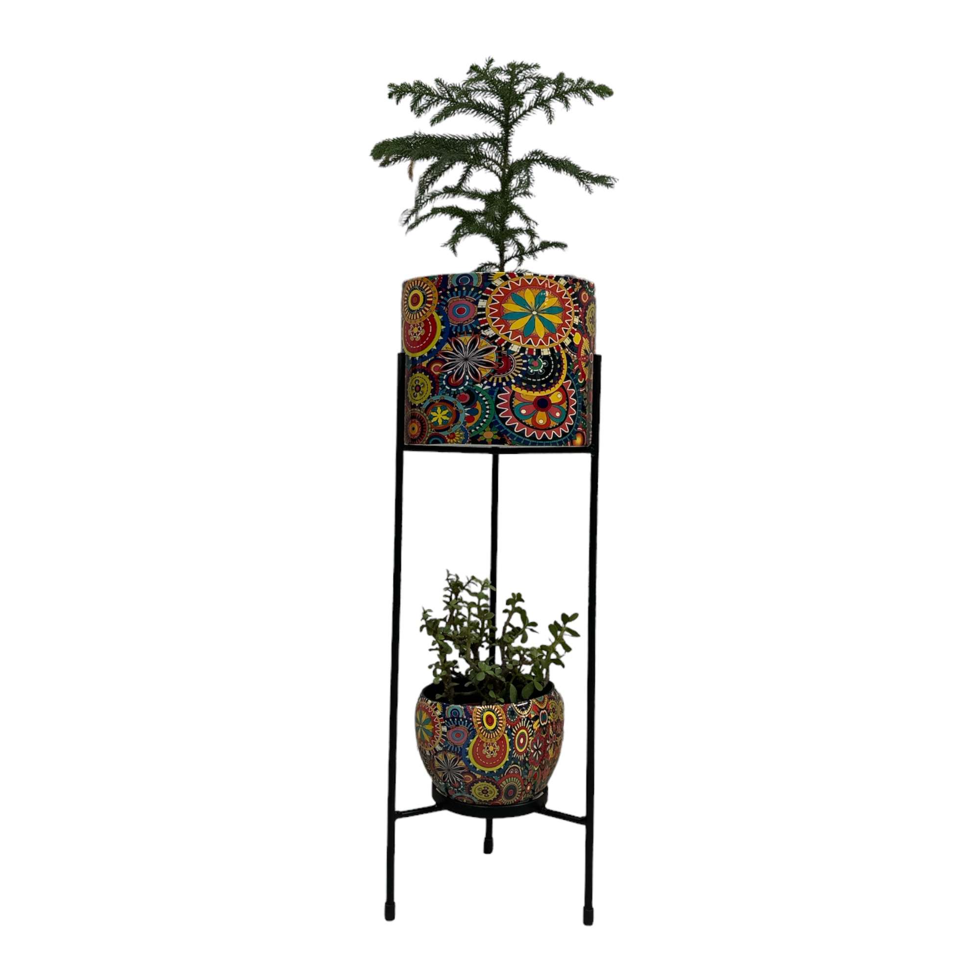 • Stylish Design: This set features an elegant and modern design, with intricate metal detailing on the planters and a sturdy stand that adds a touch of sophistication to any living space.