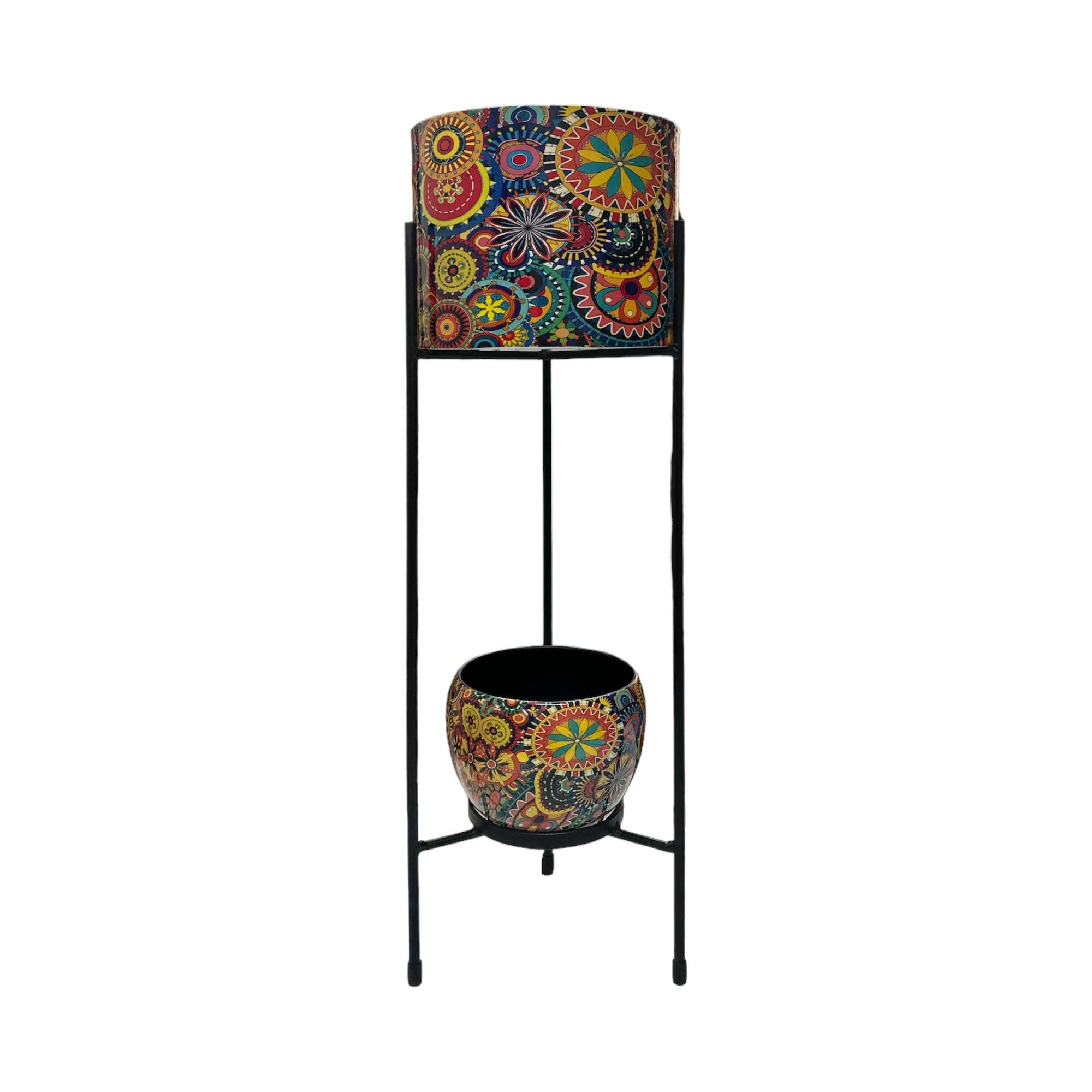 Crafted from high-quality metal materials, this decor piece is built to withstand the elements, ensuring it remains a long-lasting and enduring addition to your decor. The durable materials make it perfect for outdoor use, where it will stand strong against varying weather conditions. No need to worry about wear and tear – this metal planter with stand is designed for longevity.