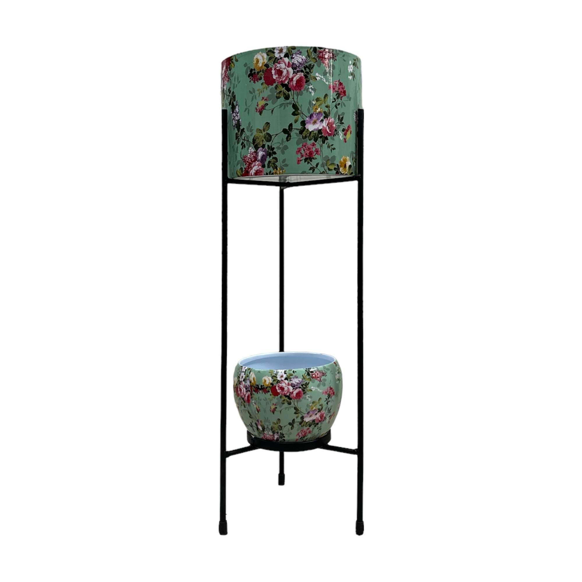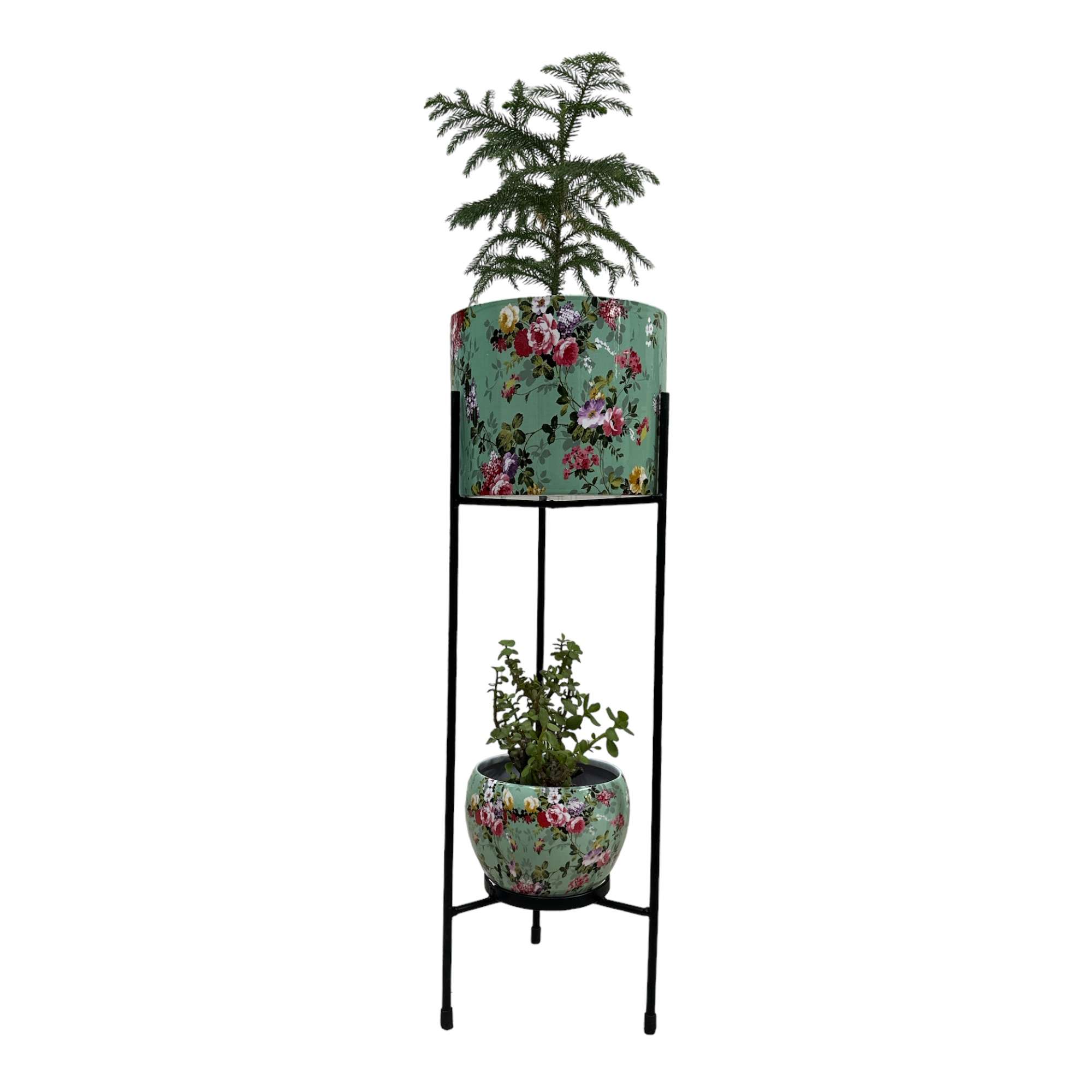 Metal Planter with Stand – Dual Metal Pot Set