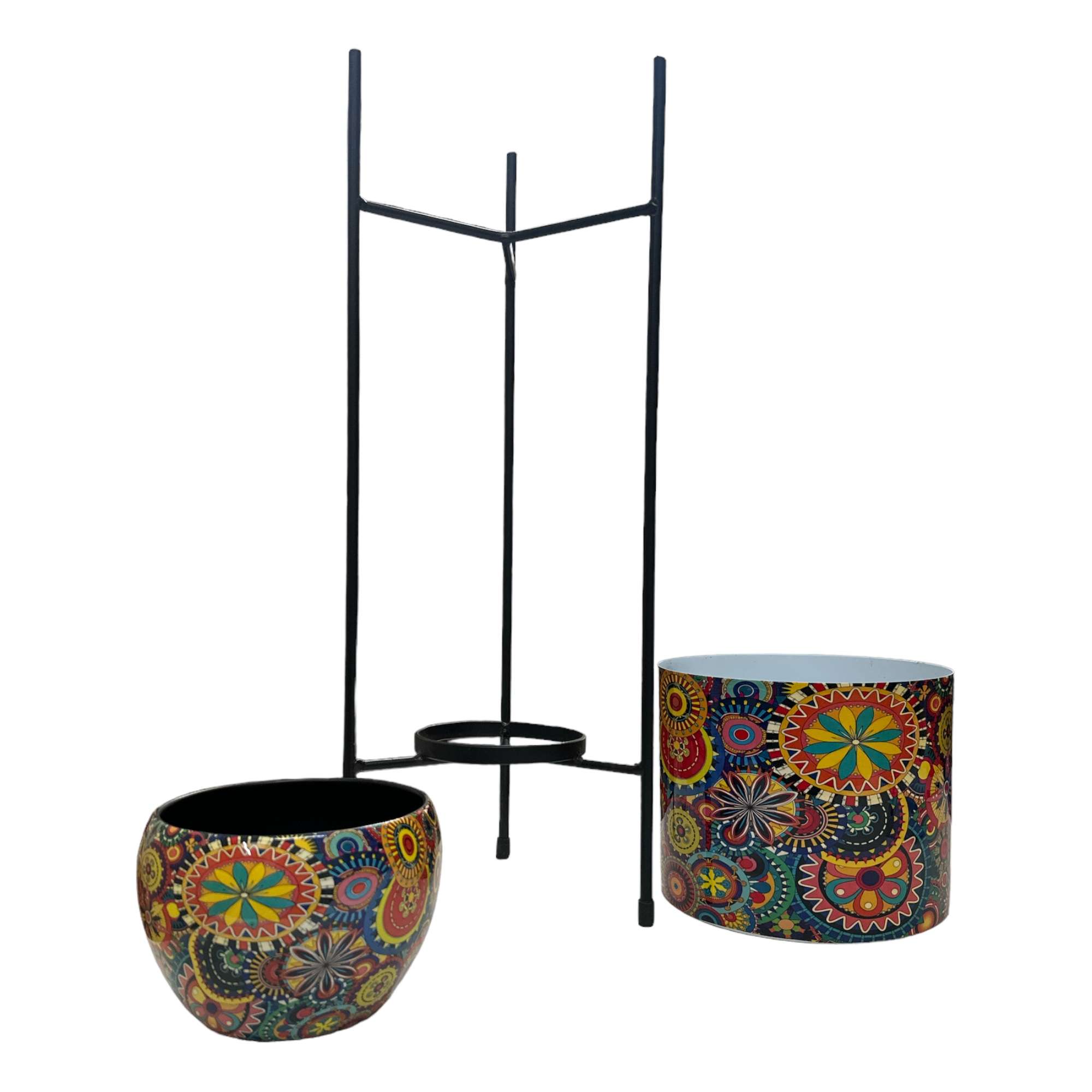 Product Name: Dual Metal Pot With Stand And 2 Metal Planters