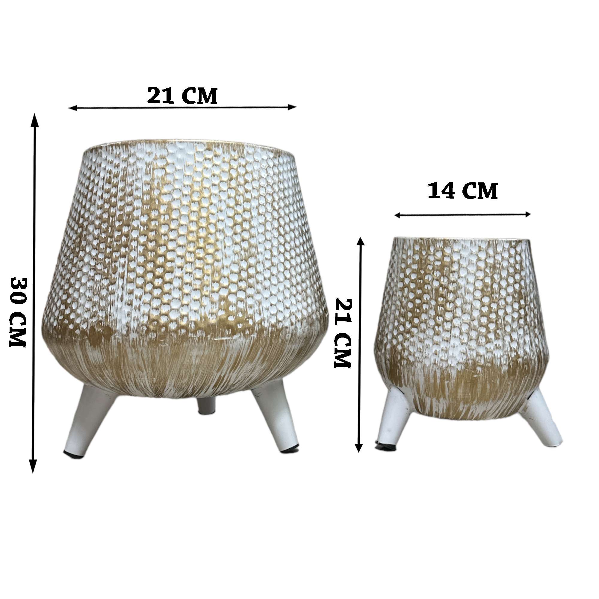Timeless Appeal: The golden and white color scheme, combined with the timeless design, ensures that these metal planters will remain chic and enduring additions to your decor for years to come.