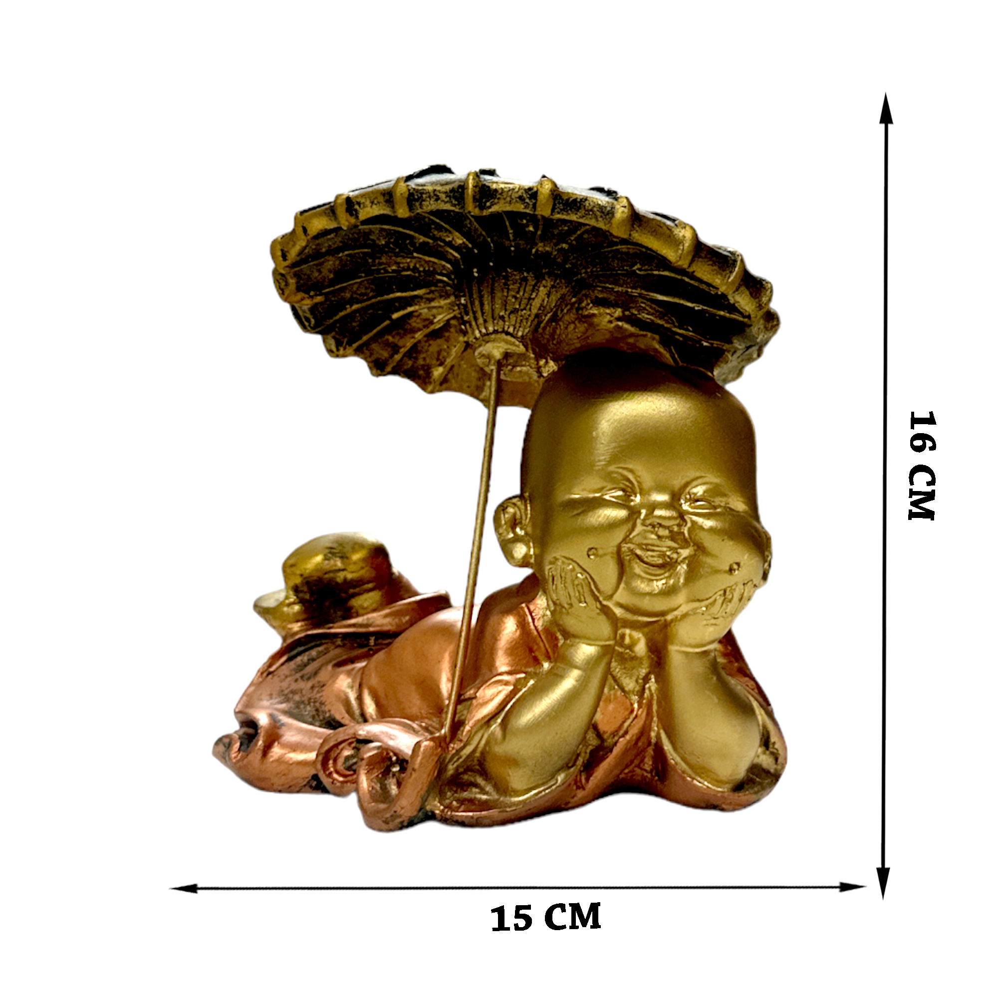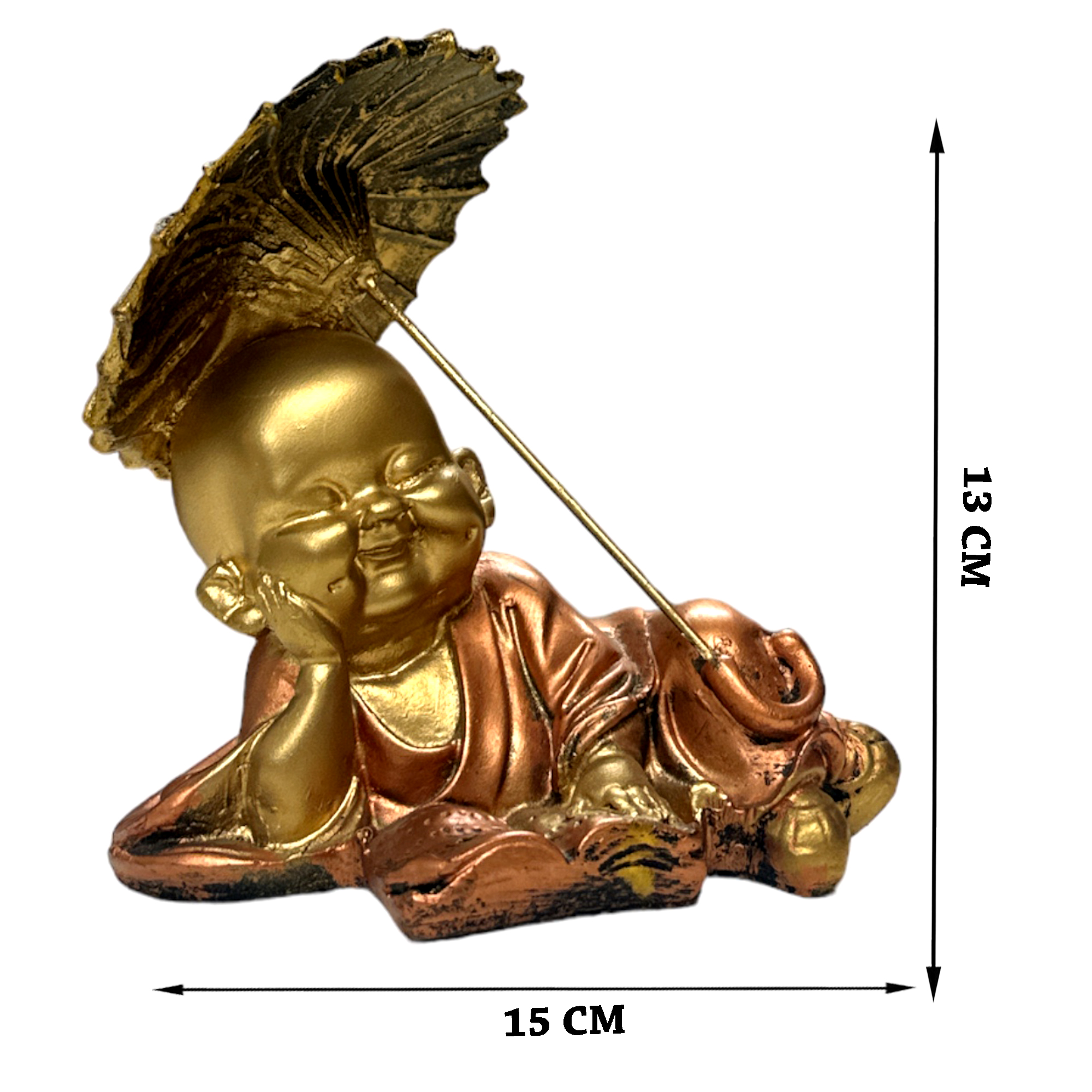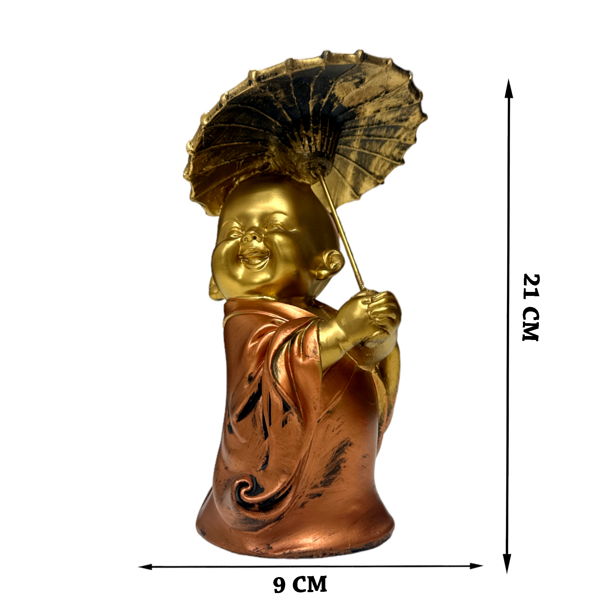 Enhance your surroundings with the Decor House Monk With Umbrella Metallic Set of 3 Showpieces, a harmonious blend of spirituality and artistry for home and office spaces. Meticulously crafted, each piece depicts a serene monk with an umbrella, symbolizing protection and tranquility. The metallic finish adds a touch of modern elegance and cultural significance. This versatile set creates an inspiring ensemble that complements diverse decor styles, infusing character and allure. Whether displayed together or individually, the showpieces evoke a sense of inner peace and reflection, enriching your ambiance with a blend of spiritual resonance and artistic charm. Embrace the serene aura of Decor House Monk With Umbrella Metallic Set of 3 Showpieces.