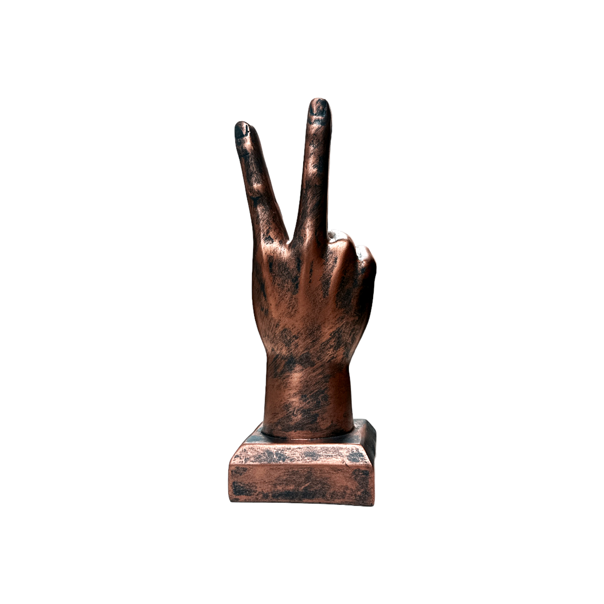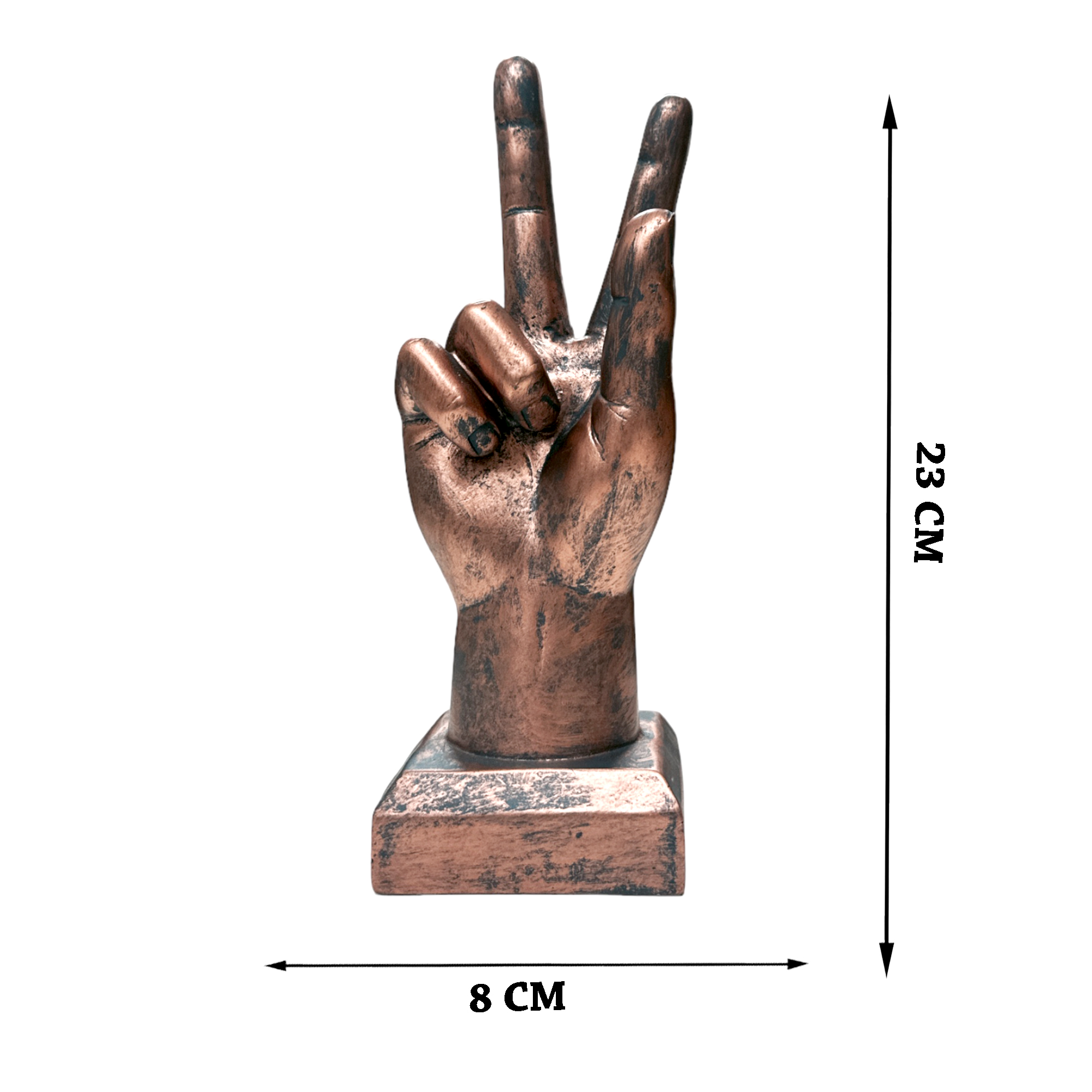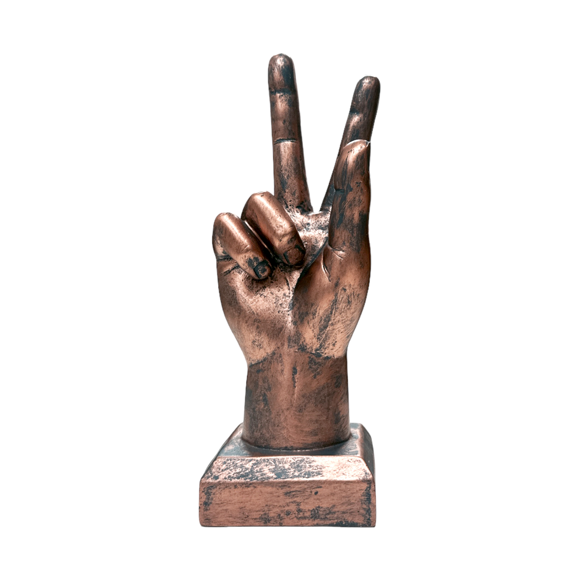 To ensure durability and quality, the Peace Sign Hand Figurine is meticulously crafted from high-quality resin. This choice of material not only makes the figurine sturdy but also preserves its aesthetic appeal for a long time.
