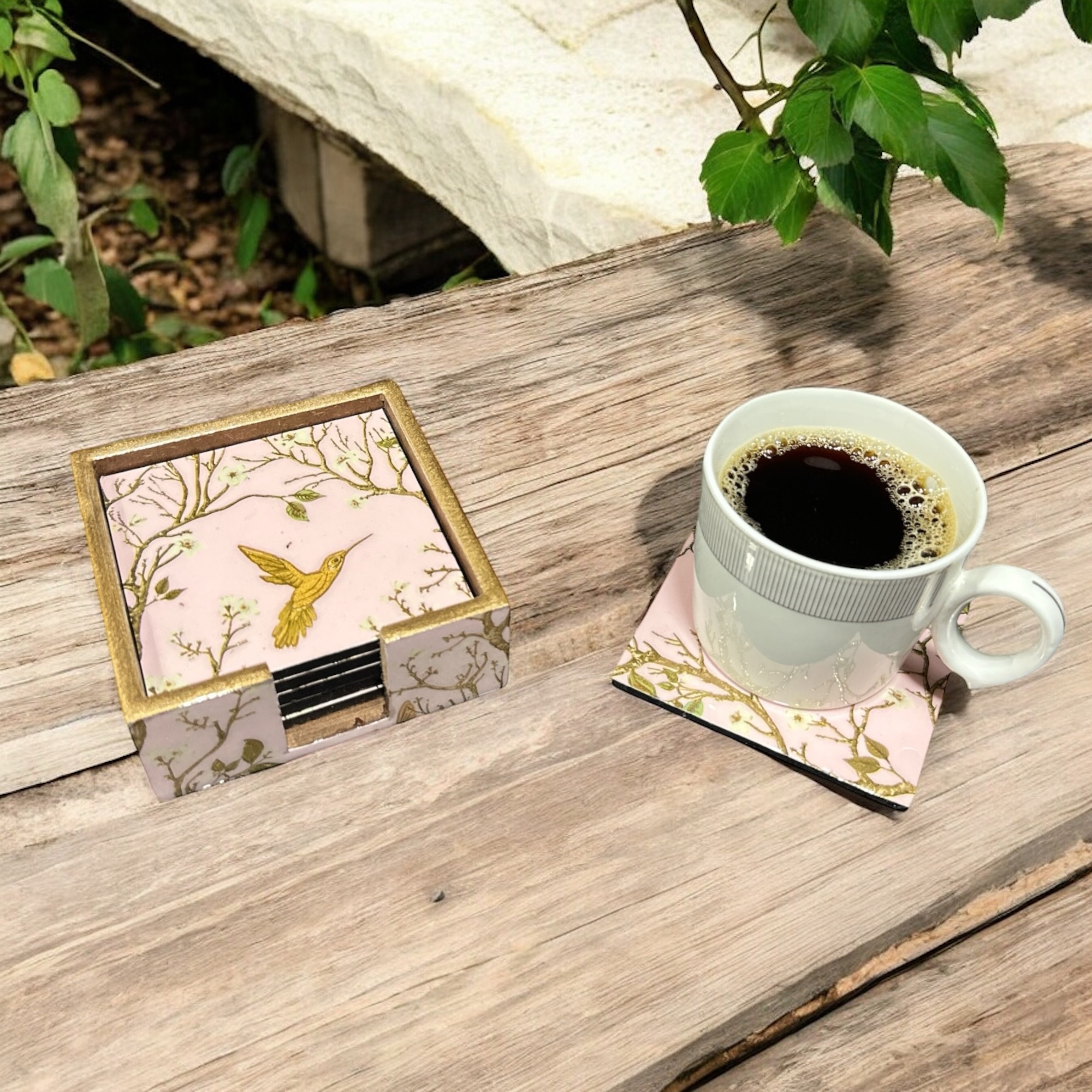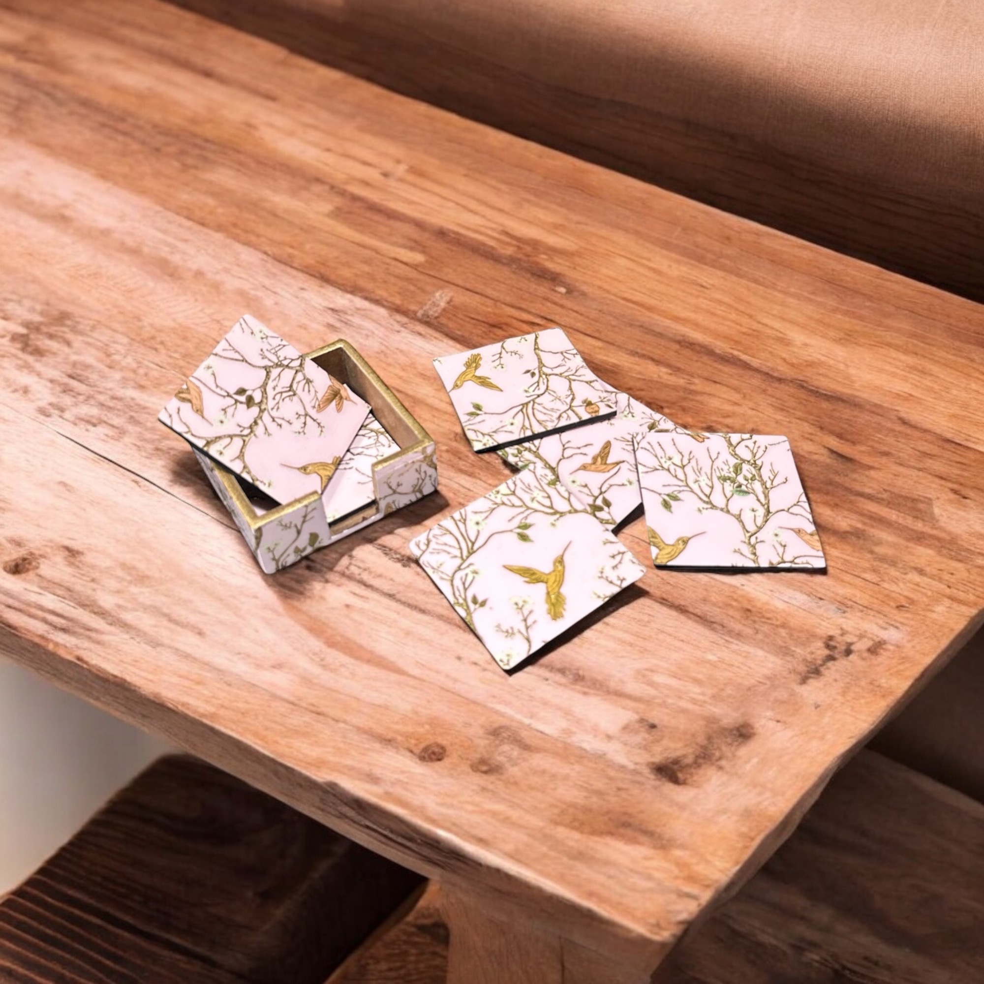 Aesthetic Appeal: The Pink Golden Coaster features a vibrant pink base that radiates warmth and charm, complemented by luxurious golden accents that add a touch of glamour. The combination of these colors not only makes this coaster visually striking but also allows it to seamlessly blend into various decor styles, from modern chic to classic elegance.