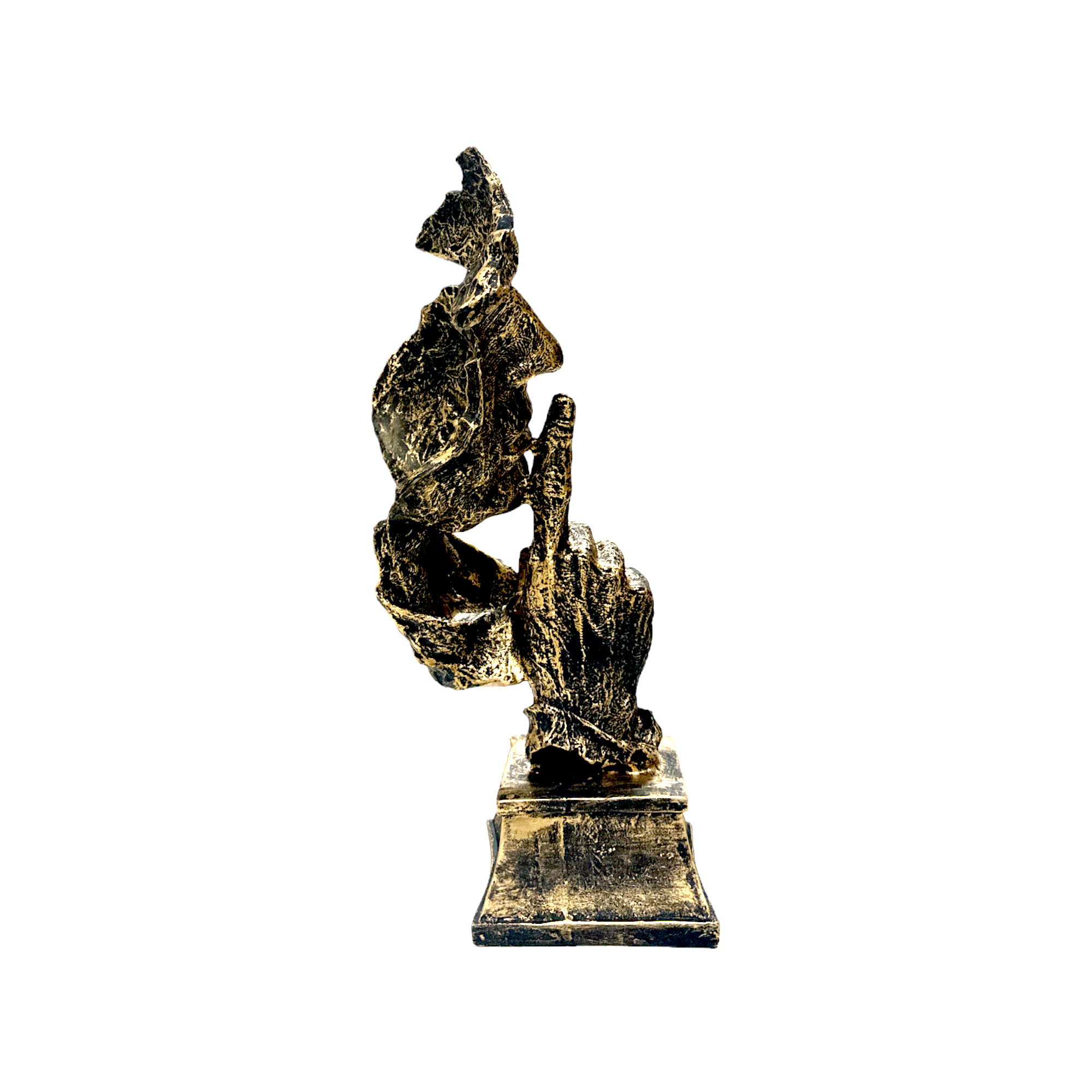 Our Silent Face Statue is not just a piece; it’s an artistic expression. Designed for enthusiasts of modern home decor, it captures the essence of contemplation, mystery, and modern allure. The artistry behind this masterpiece is in the details – from the intricately crafted features to the metallic finish that exudes luxury.
