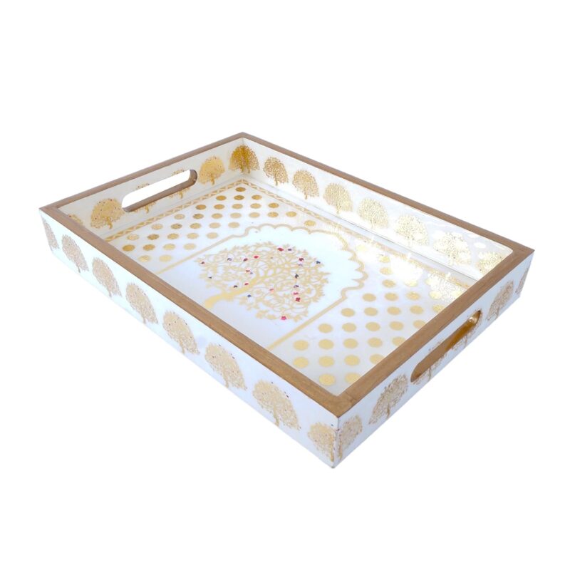 MDF Enamel Coated Serving Trays for Snacks Organizing Decorative Tray for Kitchen and Dining Multipurpose Serving Trays Set of 2 (15×11 inches,13×9 Inches)