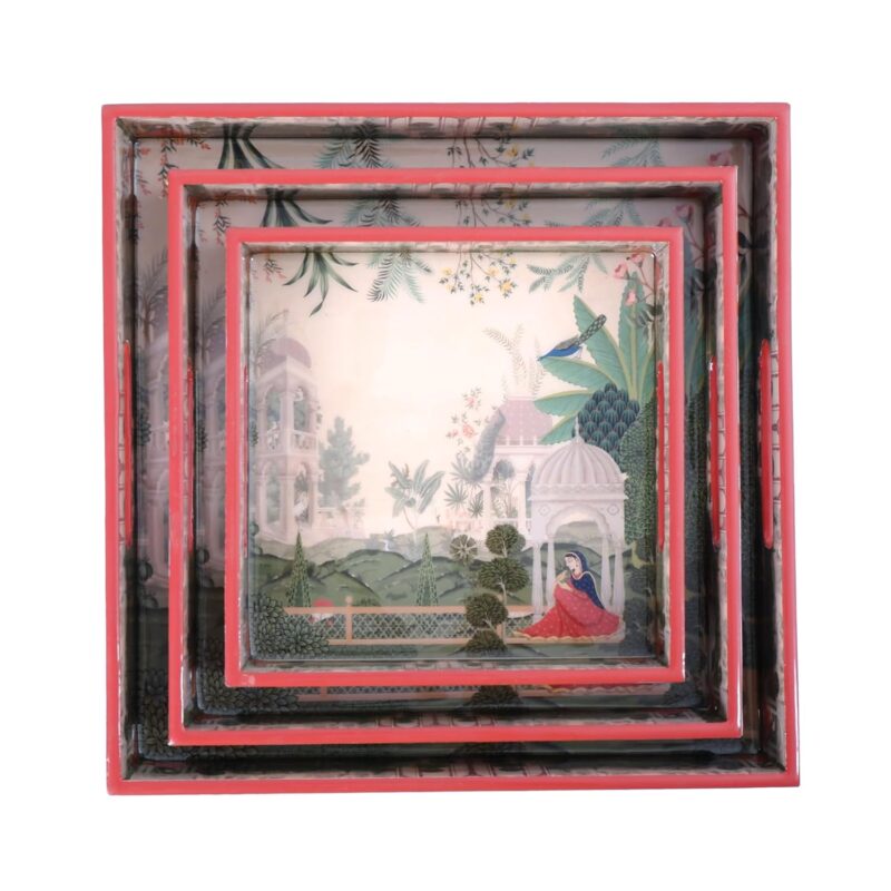 Set of 3 MDF Wood Trays Enamel Coated | Size : 12 inches 10 inches & 8 inches | Square Serving Trays | Kitchen & Dining Decorative Tray Set (Authentic Design)