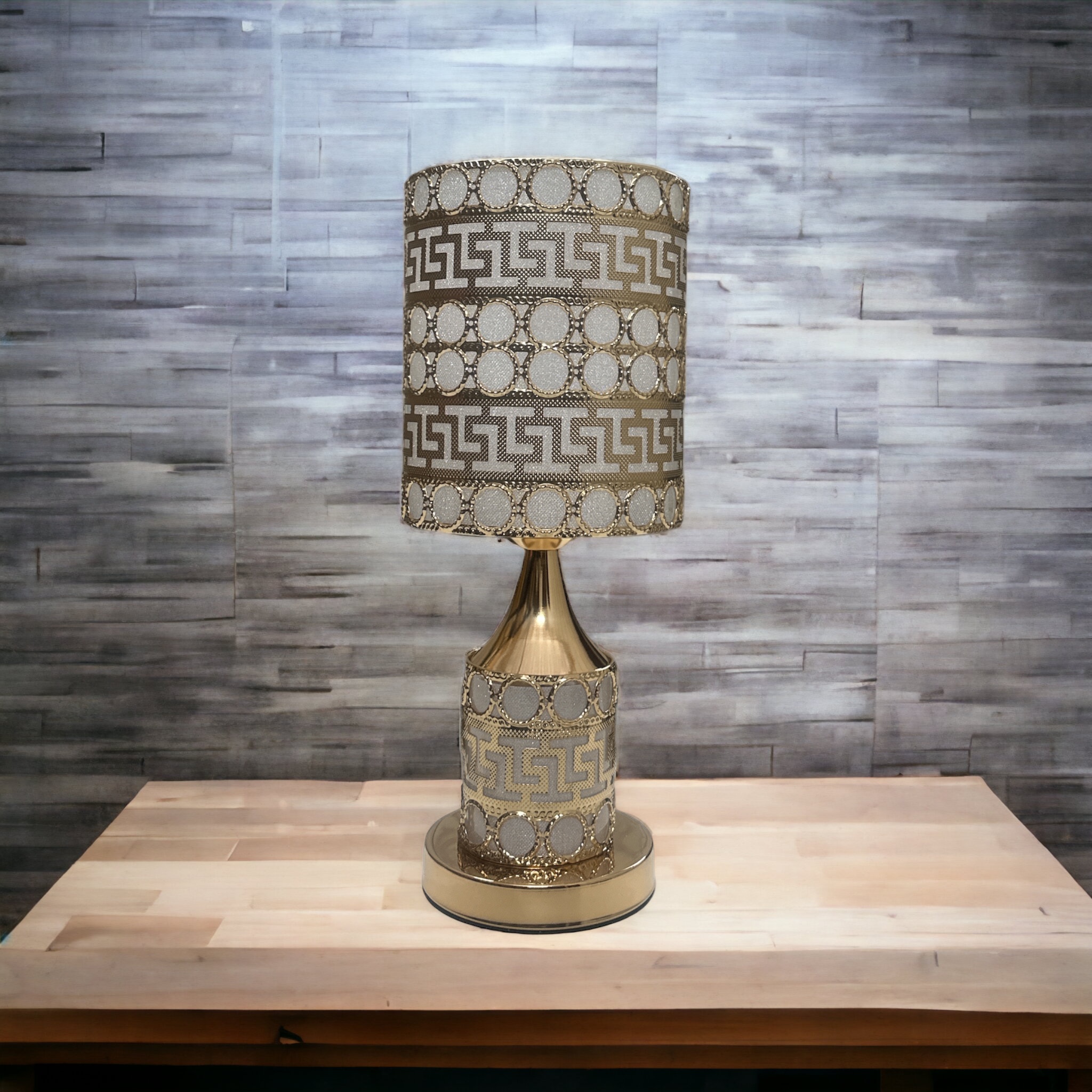 - Sophisticated Craftsmanship: The metallic finish adds a touch of refined sophistication, beautifully accentuating the lamp’s intricate carving and craftsmanship.Artistic Brilliance: Elevate your home’s ambiance with the enchanting Round Metallic Carved Lamp from Decor House – a radiant embodiment of artistic brilliance that elevates your living space.