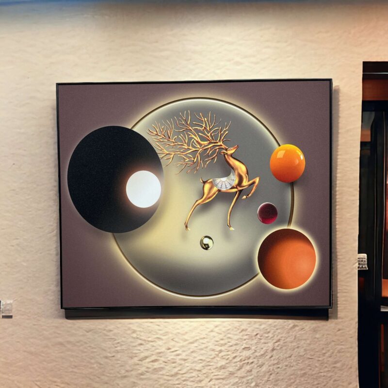 Product Name: Decor House Deer in the Celestial Realm Square Contemporary Wall Art Painting for Home and Office