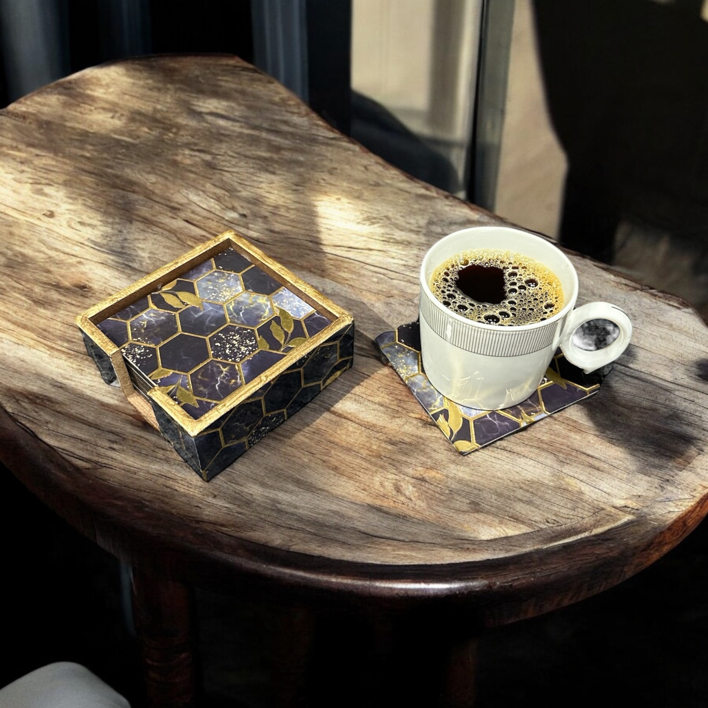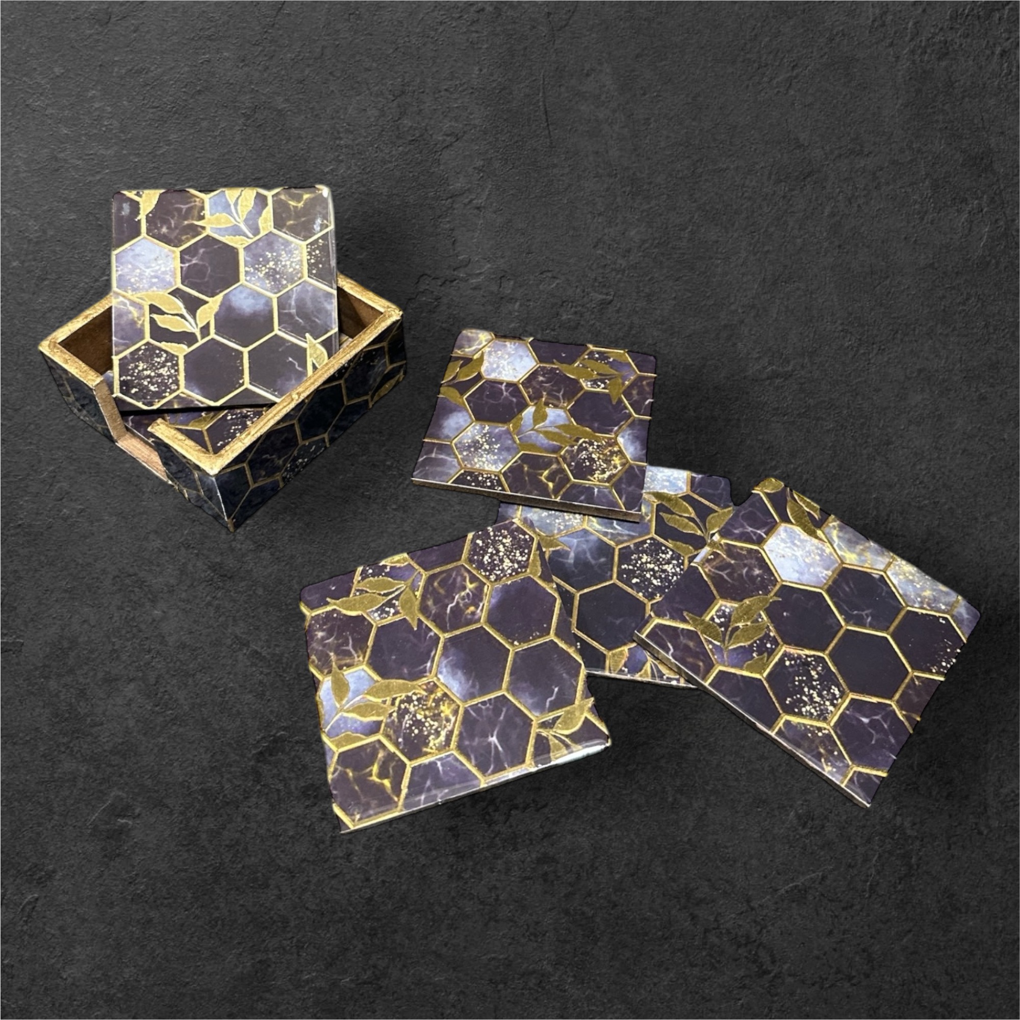 The Honeyomb Coaster is a stylish and functional accessory inspired by the natural beauty of honeycombs. Crafted from high-quality, eco-friendly materials, this coaster features a hexagonal design that not only protects your surfaces but also adds a touch of elegance to any setting. Its sleek, non-slip base ensures stability, while the intricate honeycomb pattern enhances heat resistance, making it perfect for hot beverages. Ideal for both home and office use, the Honeyomb Coaster blends practicality with aesthetic appeal, making it a must-have for any modern space.