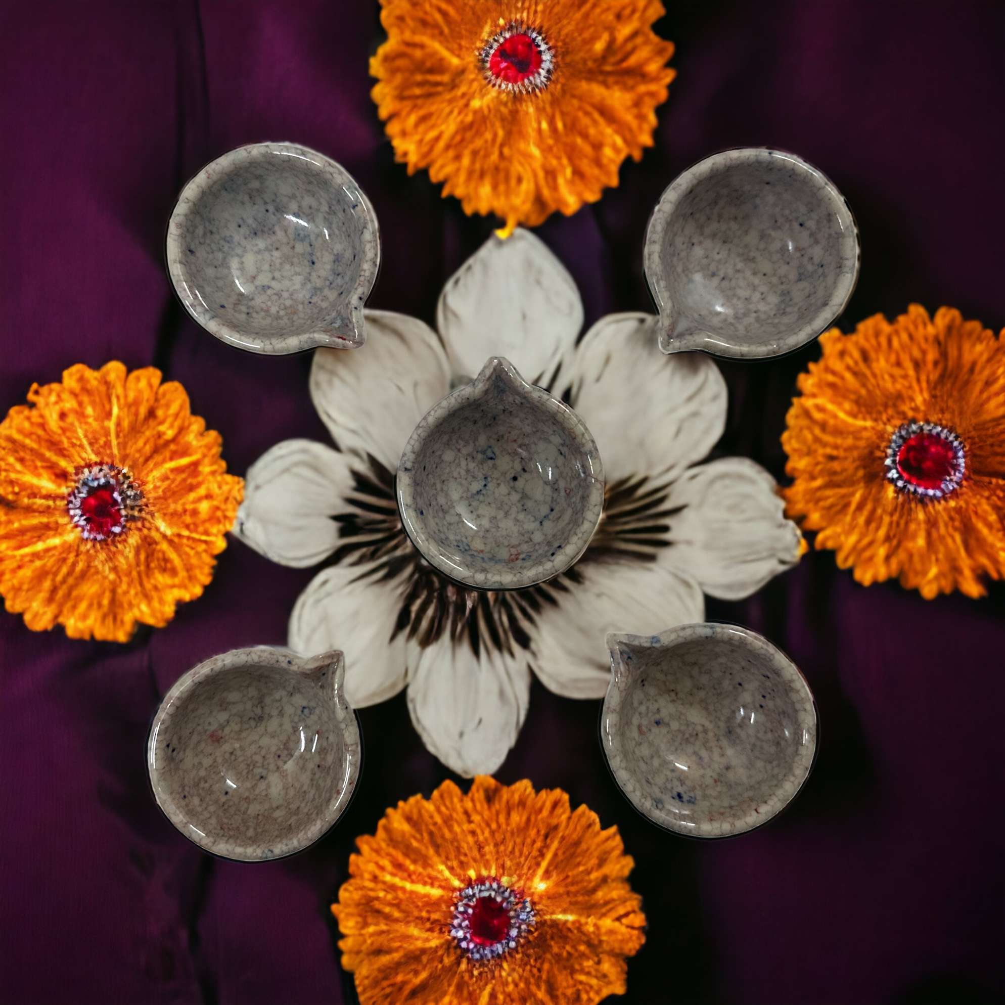 - High-Quality Ceramic: Crafted from high-quality ceramic materials, these diyas are built for durability, ensuring they can be used and cherished for years to come.