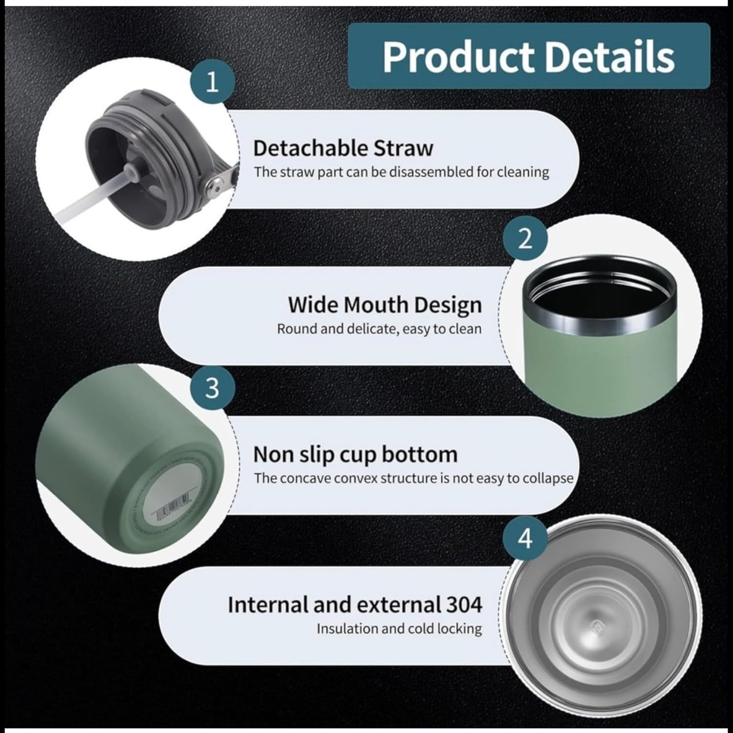 Stainless Steel Sipper Water Bottle | Insulated, Leak-Proof, BPA-Free – Hot & Cold Thermos Flask for Gym, Office, Travel, School | Durable & Eco-Friendly Sipper
