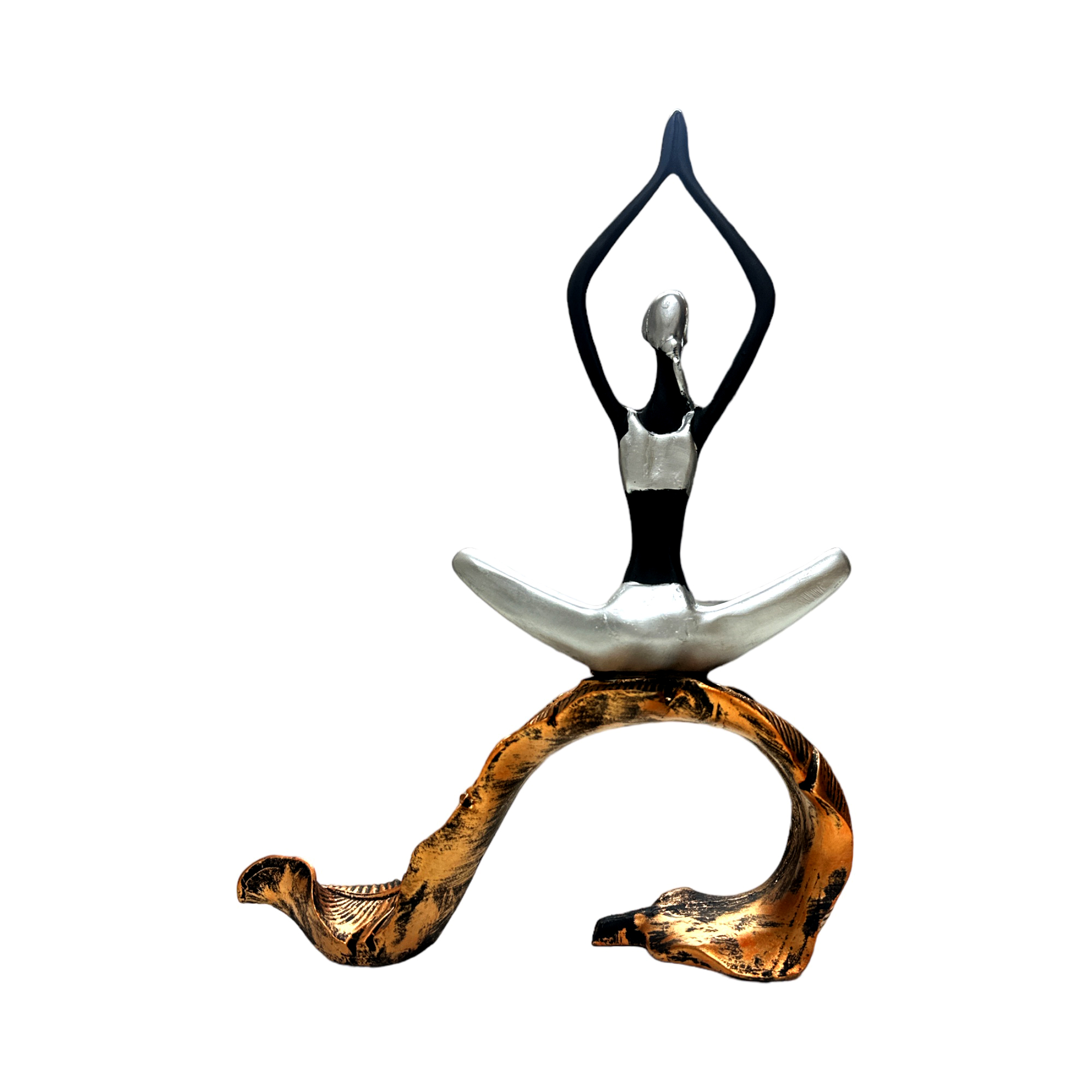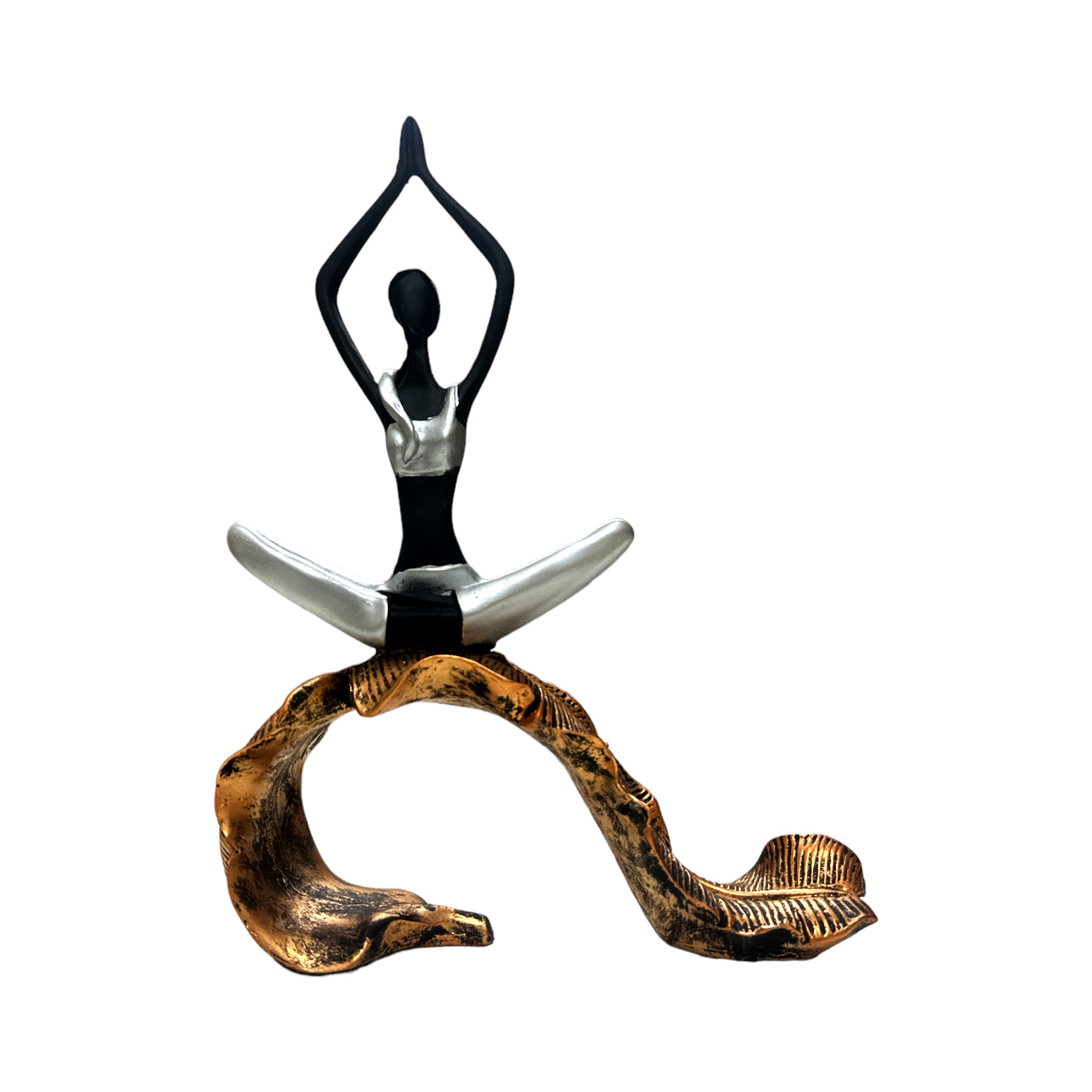 - Graceful Presence: Decor House Yoga Lady Silver Bow Pose Showpiece for home and office spaces.