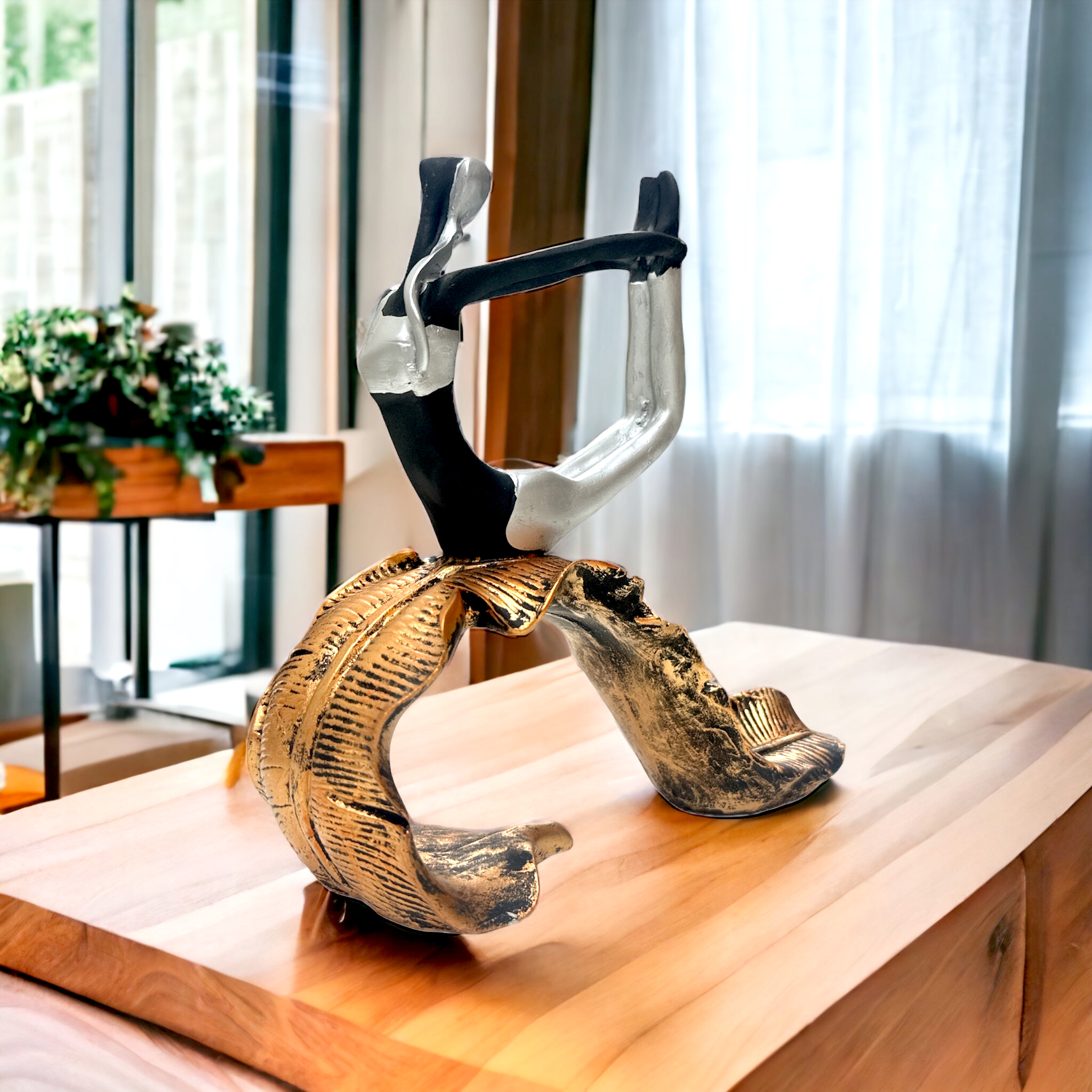 - Tranquil Elegance: Decor House Yoga Lady Silver Tree Pose Showpiece for home and office spaces.